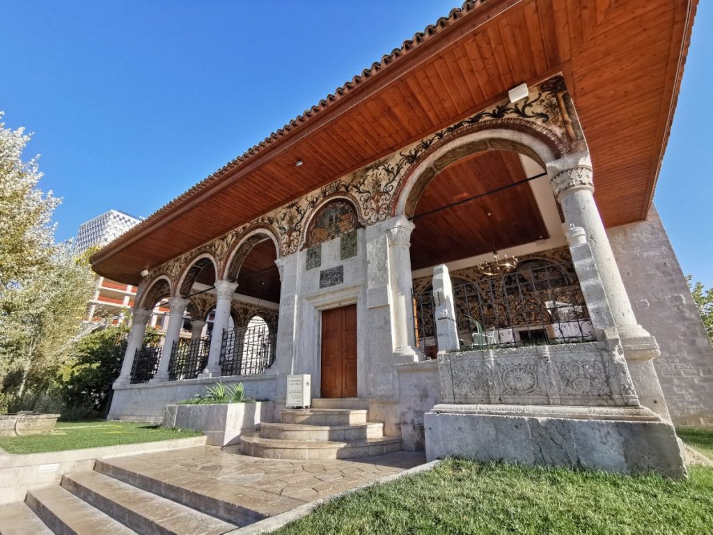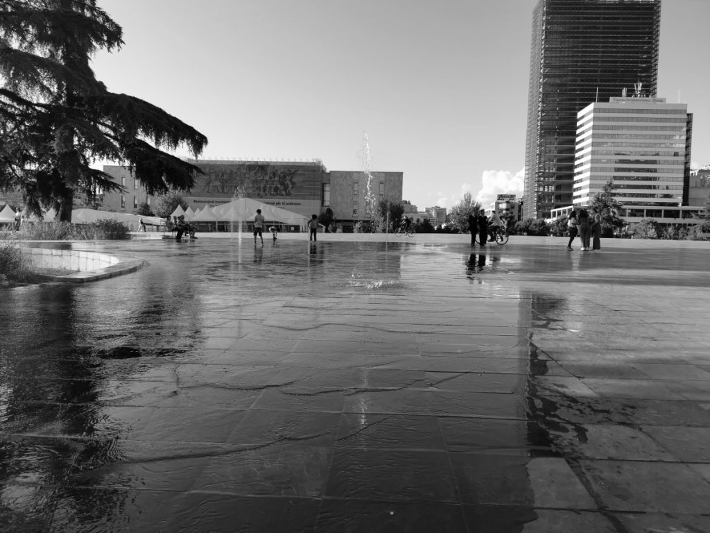 - Skanderberg-Platz – das Herz Tiranas erwartet dich unter anderem umgeben vom Kulturpalast, dem Nationalmuseum, dem Uhrtum und der historischen Et’hem-Bey-Moschee. Heute ist der Platz eine Fußgängerzone auf dem auch Veranstaltungen stattfinden. Unter einem Teil des Platzes befindet sich eine Tiefgarage. Fun fact: die Oberfläche des Platzes ist nicht eine gerade Ebene, sondern konvex. Das ist sogar mit bloßem Auge erkennbar! Wer Zweifel hat, kann die Fließrichtung des Wassers der Brunnenfontänen beobachten, das ohne Begrenzung in eine bestimmte Richtung fließt.