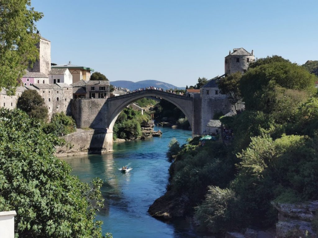 Bosnien und Herzegowina war für mich eine große Unbekannte. Ich wusste nicht so recht, was ich erwarten sollte. Der Grenzübertritt an der kroatisch-bosnischen Grenze war schnell erledigt. Reisepass, Zulassung und Versicherungskarte gezeigt und schon hatte ich einen Stempel für die Einreise. Auf der anderen Seite begegneten mir kaum Fahrzeuge und bis Mostar war es sehr ruhig, es gab aber auch recht wenig zu sehen auf meiner Strecke. In Mostar angekommen, ging ich erstmal auf Erkundungstour.