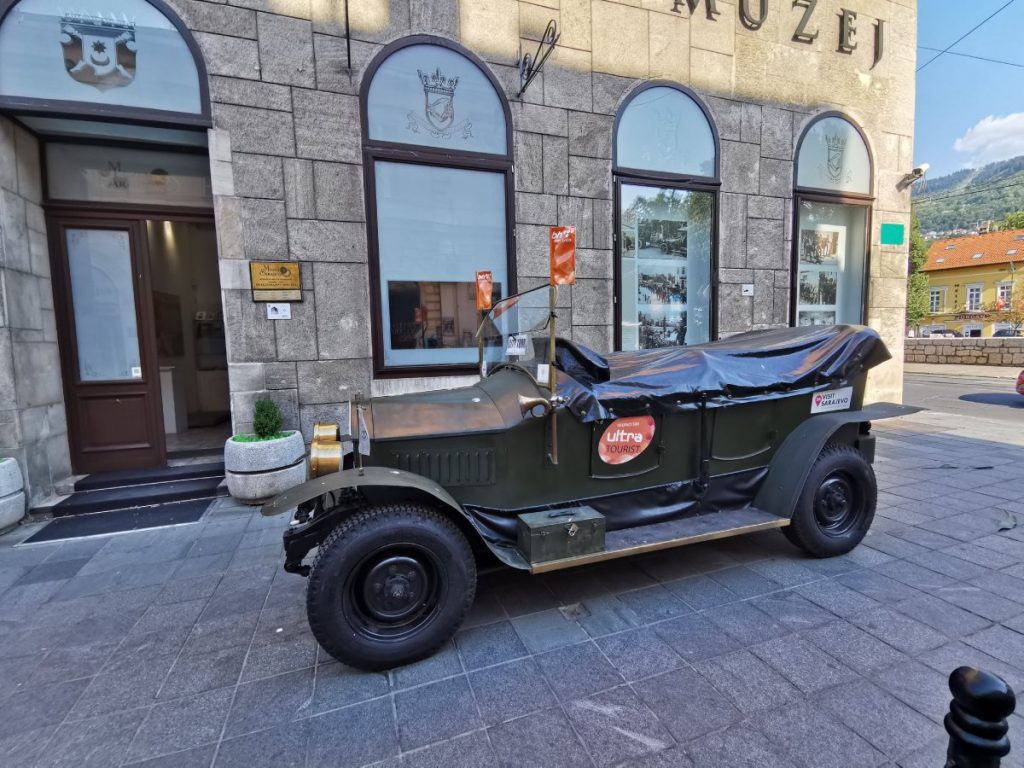 In Sarajevo kannst du eben jene Stelle besuchen, wo europäische Geschichte geschrieben wurde. Es gibt eine Replik des Wagens, in dem das königliche Paar erschossen wurde (das Original steht im Heeresgeschichtlichen Museum in Wien). Diese steht vor dem Sarajevo Museum 1878 – 1918, welches die Geschichte der Stadt und der Region vermittelt sowie auch über das Attentat selbst erzählt. Auf einem Stadtrundgang wirst du hier in jedem Fall vorbeikommen.