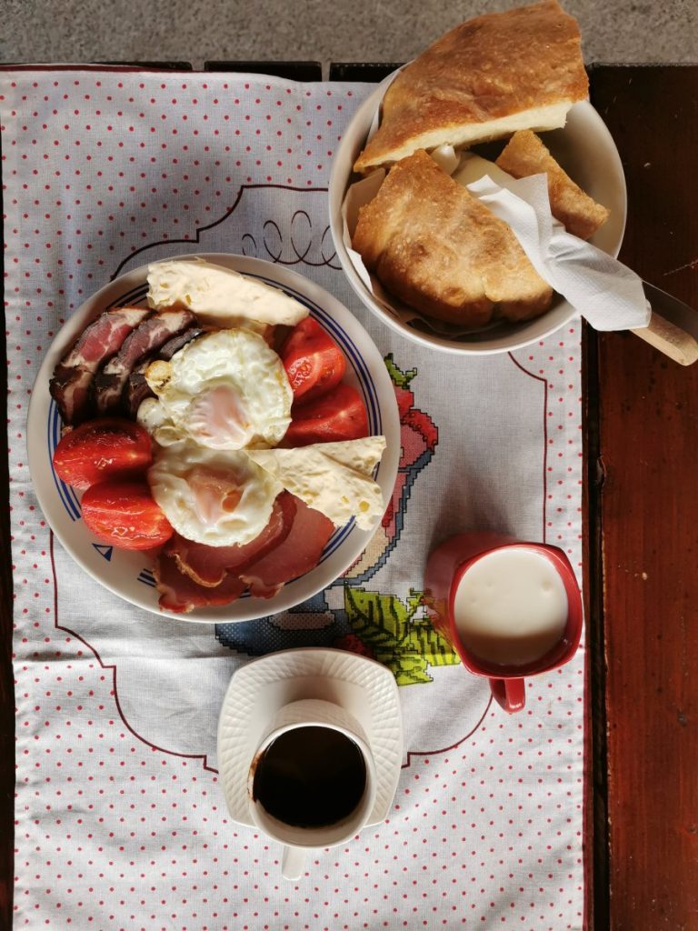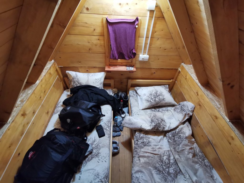 An diesem Abend übernachtete ich bei einem kleinen B & B nahe Plužine. In dieser Region gibt es viele Privatvermieter, die kleinere, selbstgebaute Hütten vermieten. Auch meine Unterkunft für die Nacht war ein dreieckiger Holzverschlag, das Bad befand sich ein paar Schritte entfernt und würde theoretisch mit den Gästen aus den anderen Hütten geteilt, gäbe es denn welche. Ich war der einzige Gast, dementsprechend zuvorkommend wurde ich behandelt. Am nächsten Tag gab es ein reichhaltiges Frühstück, alles aus eigener Produktion. Es hatte knackige 10 Grad plus. Die Hauskatze liebte meine Aufmerksamkeit und wich keinen Zentimeter von meiner Seite. Der Abschied fiel schwer, als ich mich wieder auf den Weg machte, um den Durmitor Nationalpark zu erkunden.