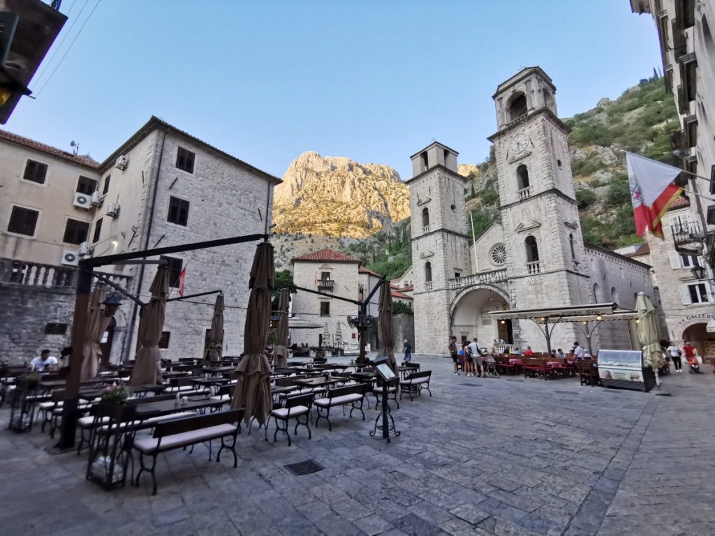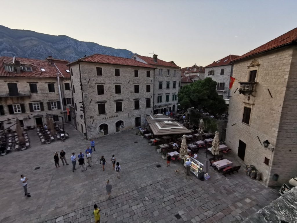- Besuch der St. Tryphon Kathedrale, die dem Schutzheiligen von Kotor geweiht ist. Es ist eine kleine Eintrittsgebühr zu entrichten (zum Zeitpunkt meines Besuchs 3 EUR), diese inkludiert den Zutritt zum Museum im oberen Stock der Kathedrale. Vom Balkon aus hat man einen wunderbaren Blick auf den Platz davor.
